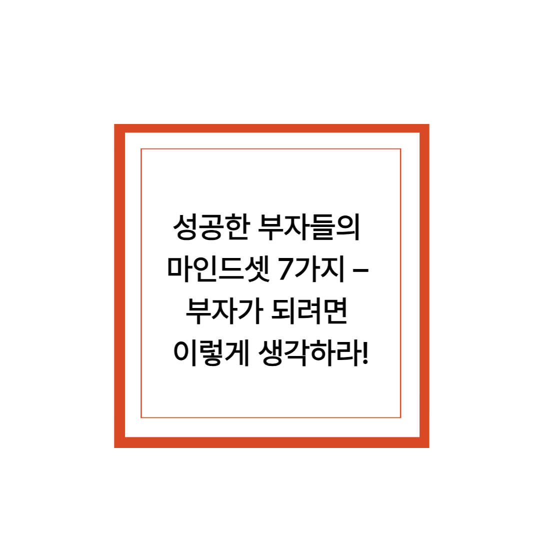 이번 글에서는 성공한 부자들이 공통적으로 갖고 있는 7가지 마인드셋을 소개하고, 이를 실생활에 적용하는 방법까지 알려드립니다.
